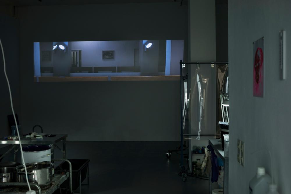 Daniel Stubenvoll beschäftigt sich in seiner interdisziplinären Praxis mit den Beziehungen zwischen Architektur und Machtstrukturen. Aus vorgefundenen Bildern und Fotografien schafft er neue Geschichten, die auf Fragmenten beruhen und die Absurdität des Lebens mit poetischem Ernst illustrieren. In Vorwegnahme der aktuellen, auf Distanz basierenden Situation breiten sich die schweren Atemgeräusche aus den leeren, verlassenen Räumen seines Videos Haunted Townhall (Institution of Suspense) aus und begleiten die anderen Arbeiten in den Ausstellungsräumen.