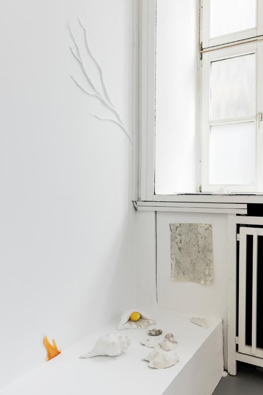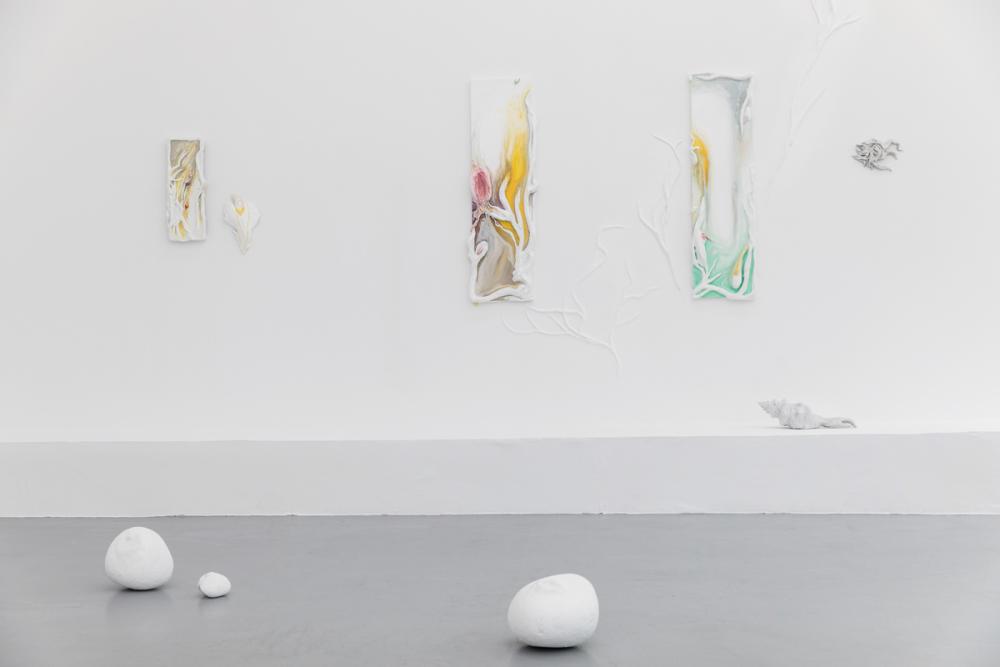 Olga Cerkasova nutzt für ihre Werke die Fantasie als zuverlässigsten Verbündeten für die Vorstellung anderer Welten und stellt damit ungeahnte Verbindungen zwischen Material und Begehren her. Indem sie die Bedeutung der Verkörperung von Begehren, Sexualität und Intimität in der Kunst betont, vereinen Olga Cerkasovas Vulvaskulpturen und plastische Interventionen in Form von gestreckten Gliedmaßen sowohl menschliche als auch nicht-menschliche Intimitäten in der Ausstellung.